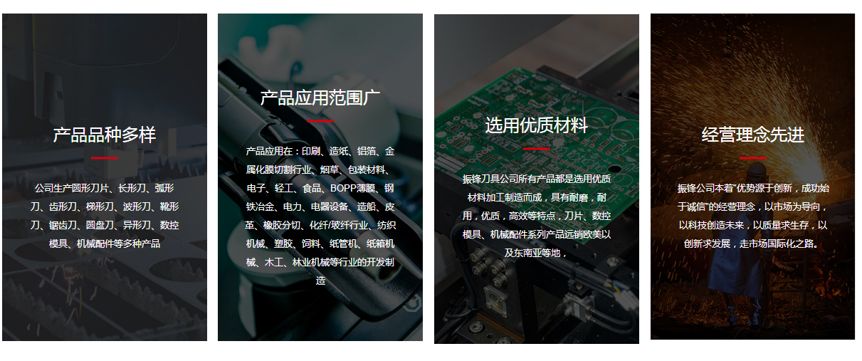 南京振鋒機械刀具有限公司-專業生產的刀具,配件,模具產品,我公司位于中國江蘇南京溧水區刀具、機床、模具商標品牌基地明覺鎮。圓形刀片、長形刀、弧形刀、齒形刀、梯形刀、波形刀、靴形刀、鋸齒刀、圓盤刀、異形刀、數控模具、機械配件等多種產品,產品應用在各種機械行業如:印刷、造紙、鋁箔、金屬化膜切割行業、煙草、包裝材料、電子、輕工、食品、BOPP薄膜、鋼鐵冶金、電力、電器設備、造船、皮革、橡膠分切、化纖/玻纖行業、紡織機械、塑膠、飼料、紙管機、紙箱機械、木工、林業機械等行業的開發制造,公司生產的材料:PCBN刀具、碳化鎢、高速鋼、合金鋼、鎢鋼、碳鋼、軸承鋼、彈簧鋼、SKH-51、SKD11、9CrSi、SKS7、SK2、Cr12Mov、H13、9CrSi、6CrW2Si、W6Mo5Cr4V2、YG8、YT15、P20、K30以及各種進口材料加工制作,同時我公司也代理各種國家的原裝進口刀具如:日本、韓國、法國、英國、美國等多個國家的刀具產品,大部分產品已達到國際水平,并隨機床配套遠銷到東南亞、歐美等海外地區。